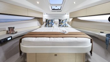 Avec ses lignes élégantes, ses performances dynamiques, et son intérieur raffiné, la Princess V40 illustre parfaitement l’esprit de la gamme V Class. Sa coque en V profond assure une maniabilité exemplaire et un confort de navigation optimal. À l’extérieur, profitez d’un cockpit spacieux, idéal pour recevoir vos invités, avec la possibilité d’ajouter un bain de soleil convertible. À l’intérieur, son salon lumineux et ses deux cabines généreuses offrent un cadre élégant et accueillant. La cabine avant dispose d’une salle de bains privative avec un accès supplémentaire au salon, tandis que la cabine arrière peut être configurée avec des couchettes coulissantes transformables en lit double.