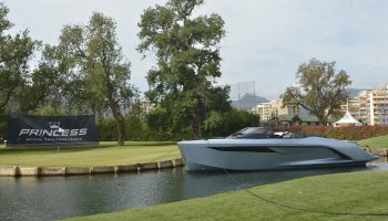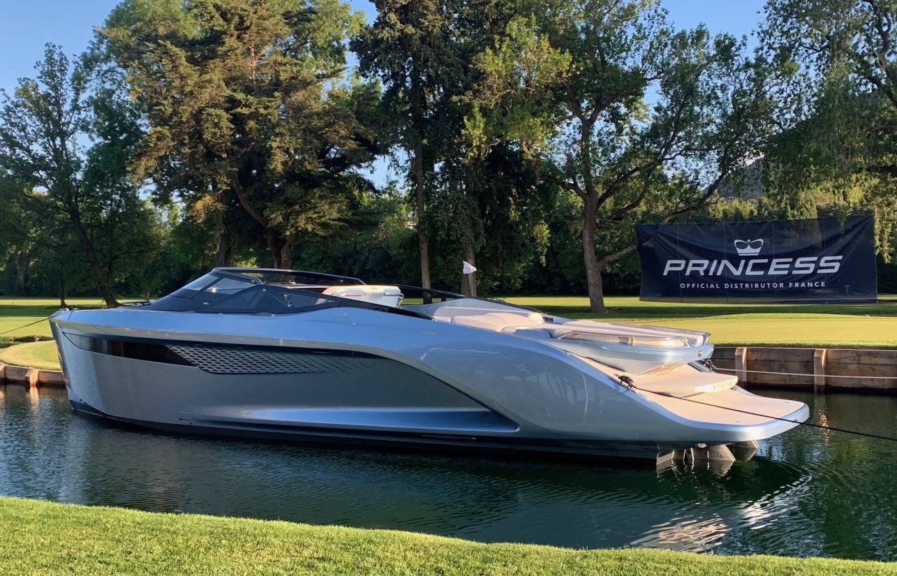 Les golfeurs ont pu admirer sur le trou n°18 le révolutionnaire Princess R35 construit en carbone et équipé de foils et découvrir le nouveau Princess V50 amarré le long du parcours.