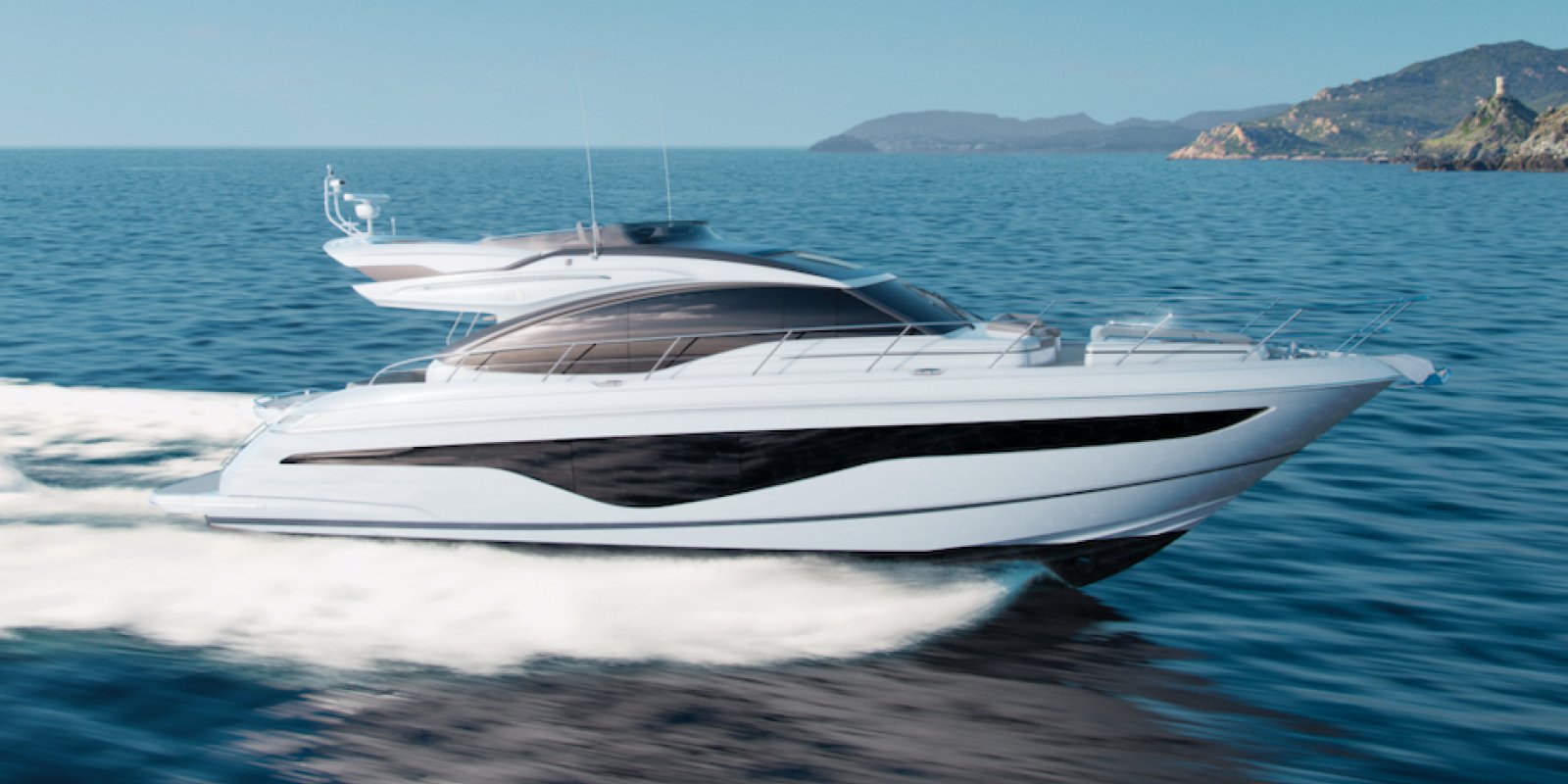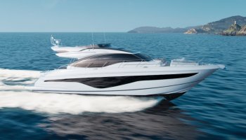 Le nouveau Princess S62 sera lancé en avant-première au salon de Dusseldorf. Il est l’héritier de la récente série S du chantier Princess. Cette nouvelle génération déjà présente dans la gamme à travers le Princess S78 et le nouveau S66 est le mélange ingénieux entre une vedette open et flybridge. Dans ses aménagements extérieurs, le Princess S62 offre le bain de soleil, le garage à annexe, le toit ouvrant électrique (en option), le pont portugais mais également un vrai flybridge. Il est remarquablement spacieux à l’extérieur mais également à l’intérieur. La cuisine bar et le coin repas sont positionnés entre le cockpit extérieur et le salon intérieur. Cette partie salon est très lumineuse grâce aux vitres latérales de grande dimension. Le pont inférieur offre trois cabines dont la cabine propriétaire occupant toute la largeur de la coque. Une cabine marin est également disponible. Les performances sont élevées. Motorisé avec 2 x 1200 cv MAN, il atteindra aisément une vitesse de plus de 35 noeuds.