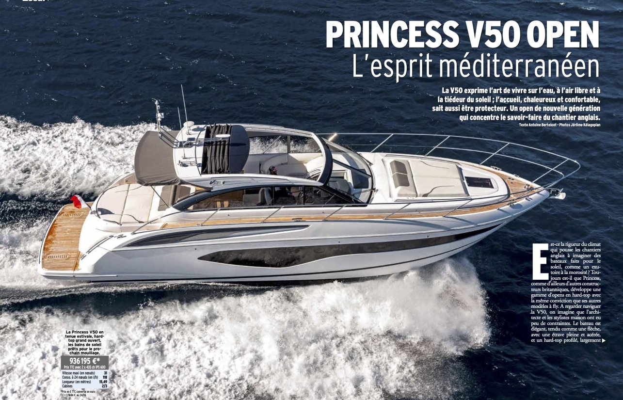 Les performances sont flatteuses avec 31 nœuds de vitesse maxi sans forcer et un bateau à plat. 20/24 nœuds en croisière permettront de couvrir de bonnes distances sans forcer. L’un des avantages des IPS est la facilité demanœuvre que procure le joystick, principalement dans les ports encombrés ou si le vent se met de la partie. L’autre point appréciable est l’ensemble des fonctions que permettent ces propulsions très électroniques : cela va du pilote automatique en passant par le positionnement dynamique (l’ancre virtuelle) et le contrôle et la gestion des machines via un écran dédié ou sur le traceur Raymarine. La V50 Open est un yacht séduisant, raffiné et sportif. Son équipement standard haut de gamme est particulièrement complet et un propriétaire n’aura que peu d’options à ajouter.