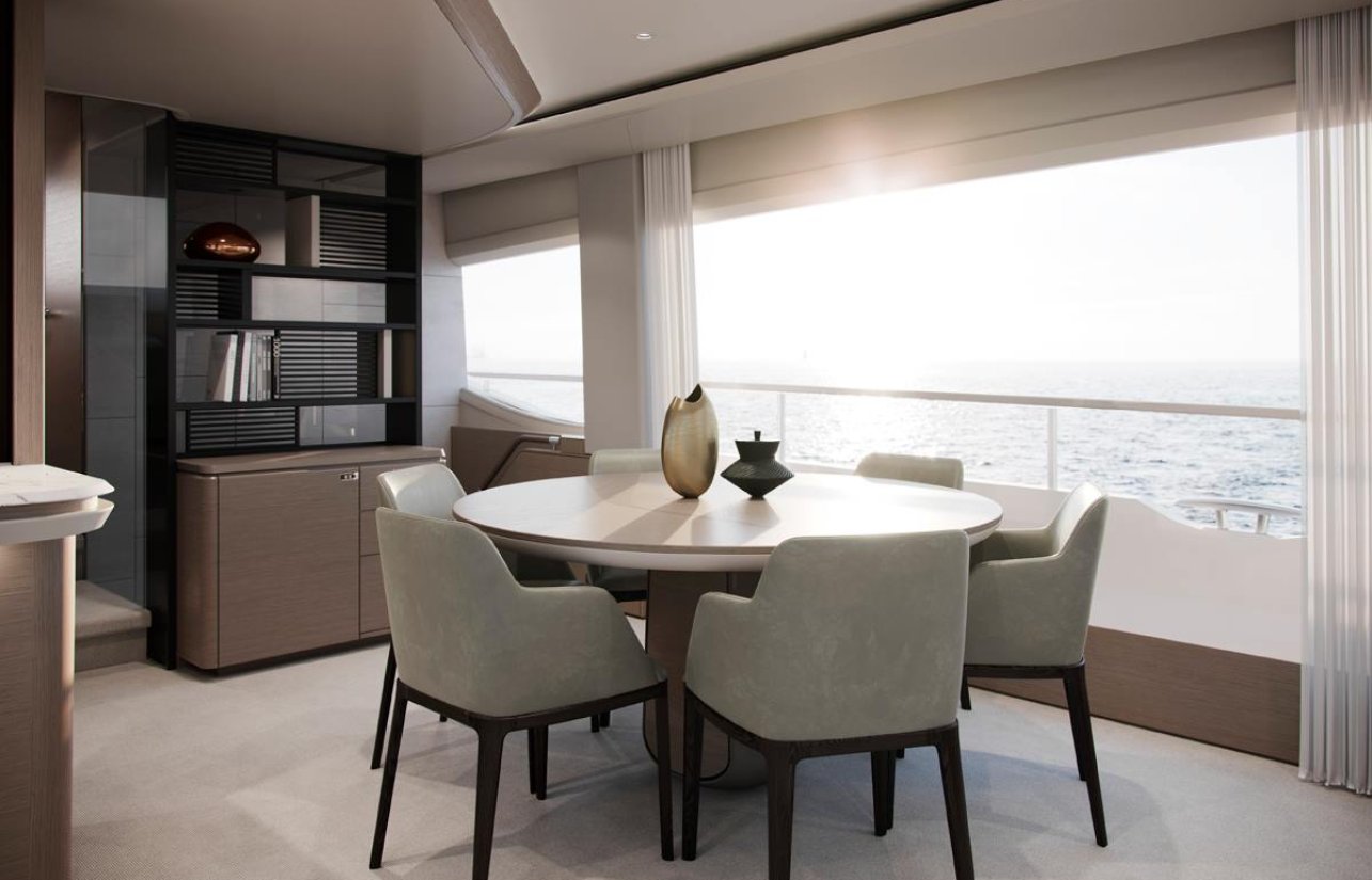 The all-new Princess Y85, launches at Bootdüsseldorf January 19th 2019. Designed in collaboration with long-standing naval architects Olesinski and Italian styling house Pininfarina. Innovative flexible galley arrangement allows guests to choose between open plan or enclosed galley at a touch of a button. The Princess Design Studio interior, features a Naim Audio audio system and unique handcrafted teak detailing, offering a truly luxurious experience throughout its expansive main deck layout and four cabins that comfortably accommodate eight guests.