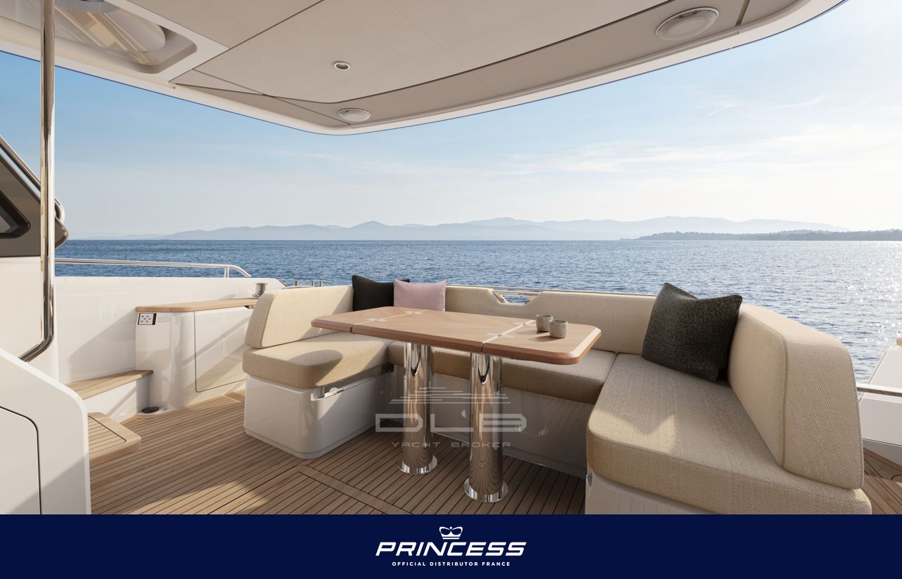 The exterior design, true to Princess DNA, evolves with more contemporary lines, particularly aft and along the side decks, while the optional hydraulic bathing platform provides easy access to the water and tender. Forward, a comfortable sunbathing area completes the relaxation spaces.