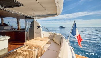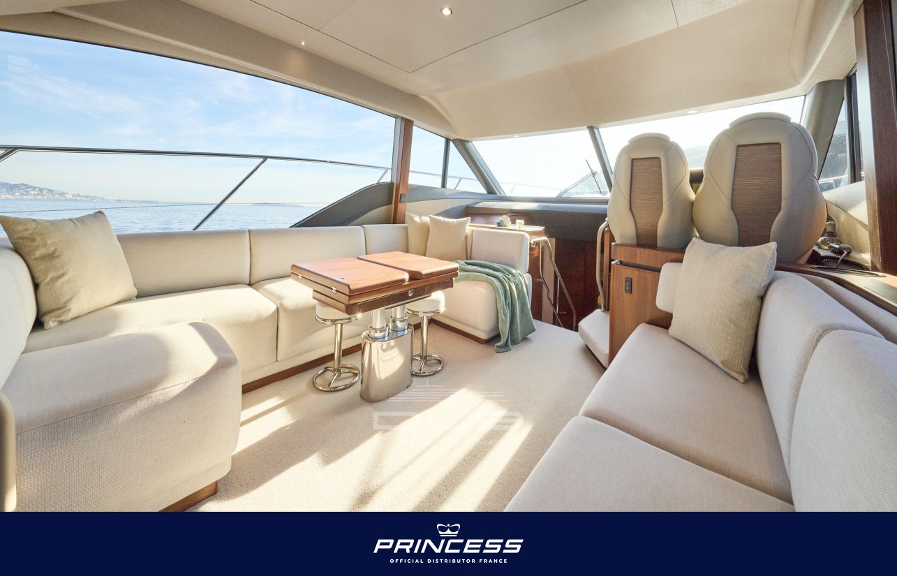 Discover this Princess F55, a new boat currently available for sale and on display at the Port de La Napoule. This model perfectly embodies elegance and performance, offering a perfect balance of comfort, technology and reliability.