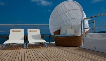 | Flybridge wet bar with refrigerator and electric barbecue |