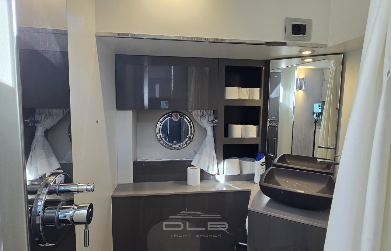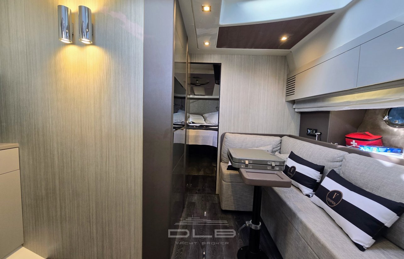 Discover this 2021 Cranchi M44 HT, an iconic hard-top that combines Italian design, marine performance, and premium comfort. This model stands out with its elegant Nardo Grey hull, highly sought-after for its sporty and contemporary look.