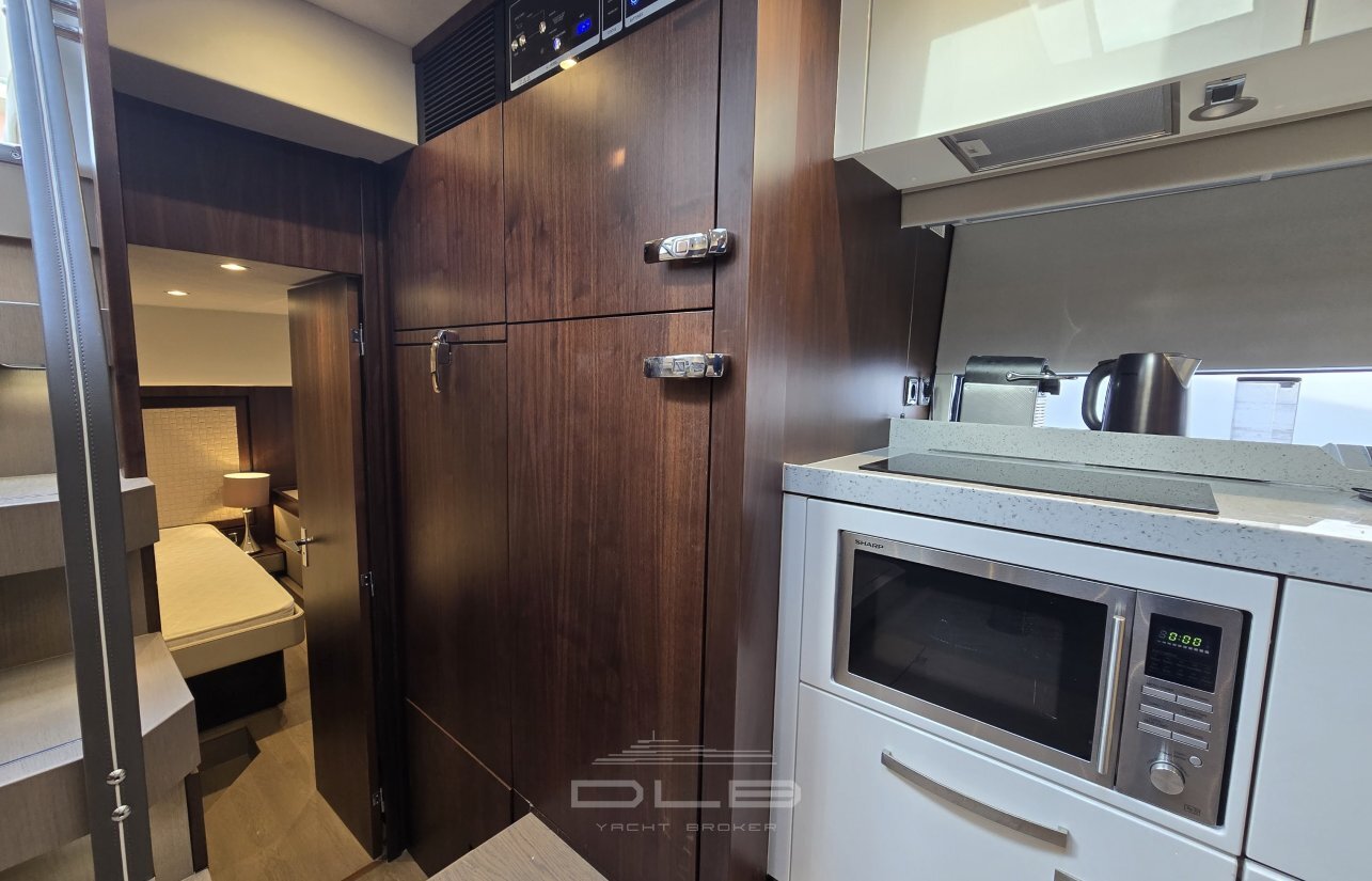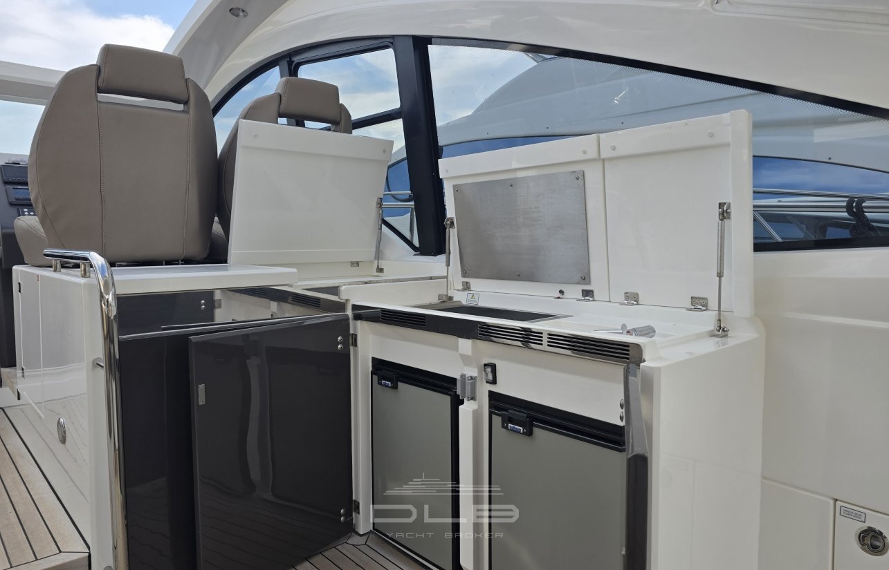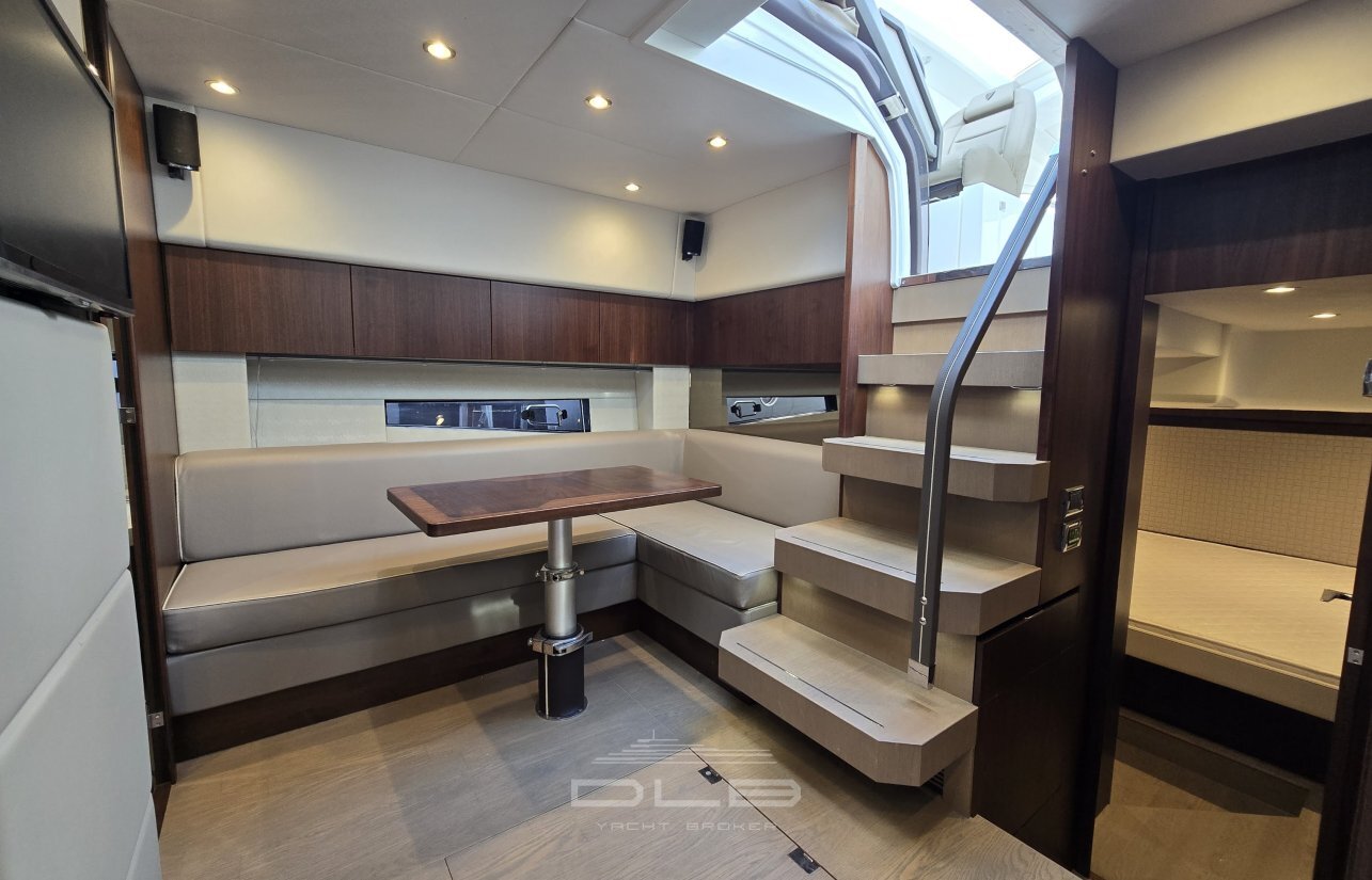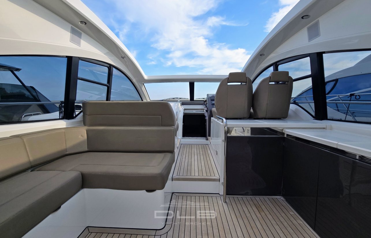 With two comfortable cabins, a spacious cockpit featuring a bar, barbecue, and hydraulic bathing platform, as well as a tender garage at the stern, it perfectly embodies the harmony of pleasure and comfort.