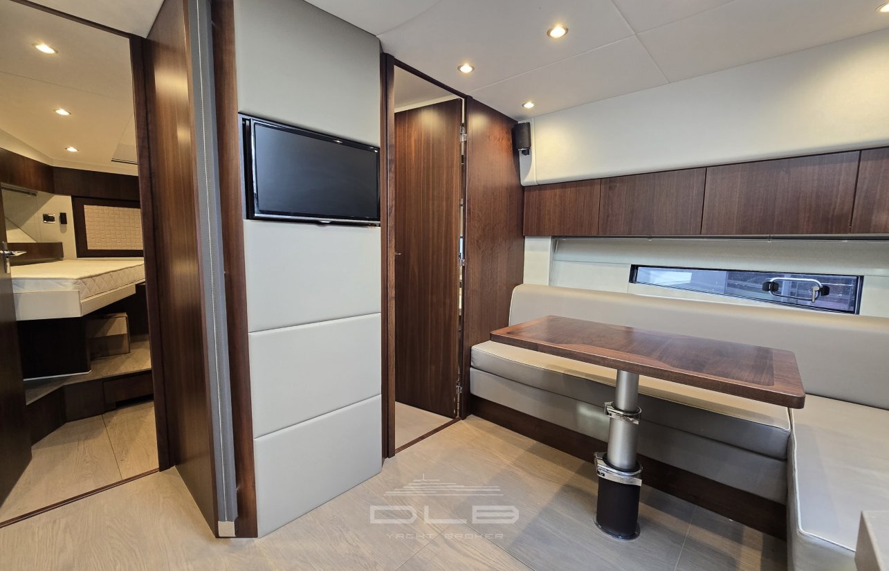 Powered by twin Volvo D6 engines with 435 hp each and only 320 engine hours, this meticulously maintained yacht has been stored ashore in a shipyard 10 months out of 12 since delivery, ensuring an exceptional condition.
