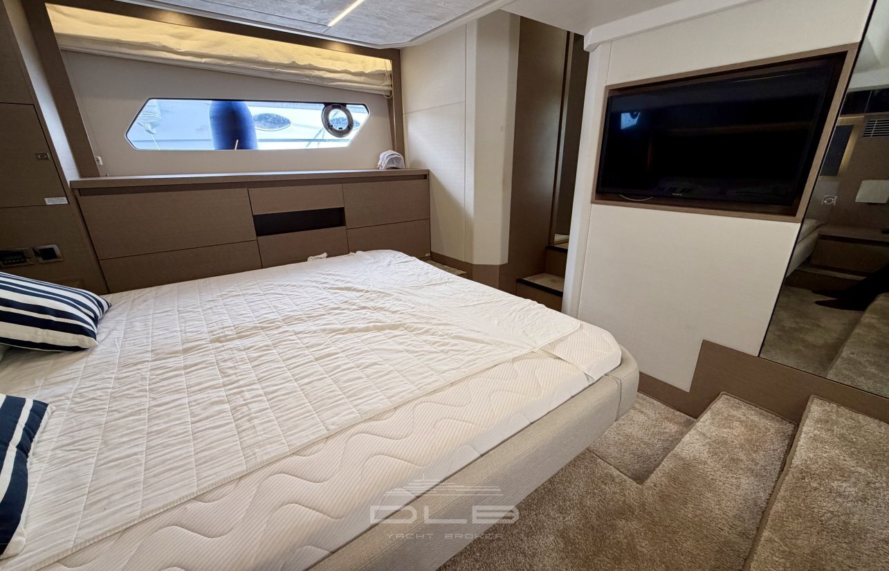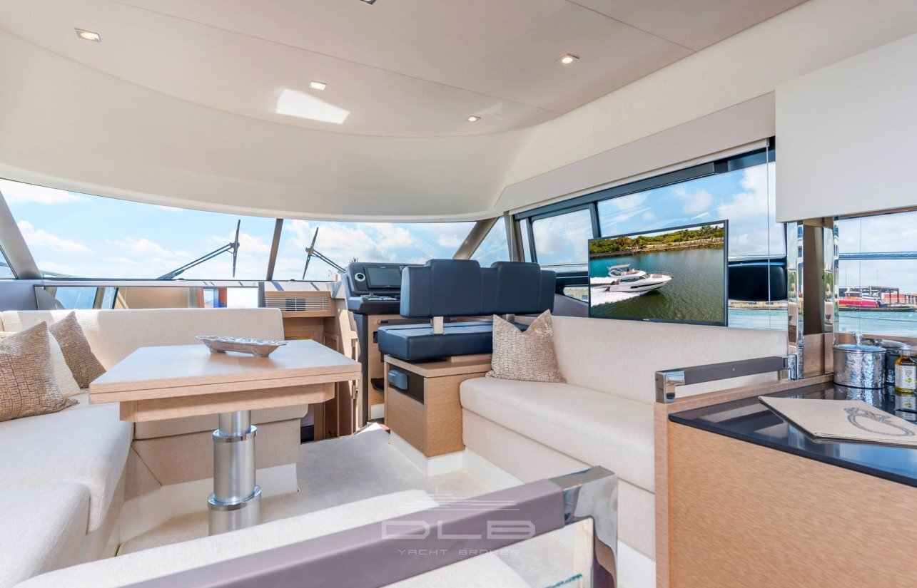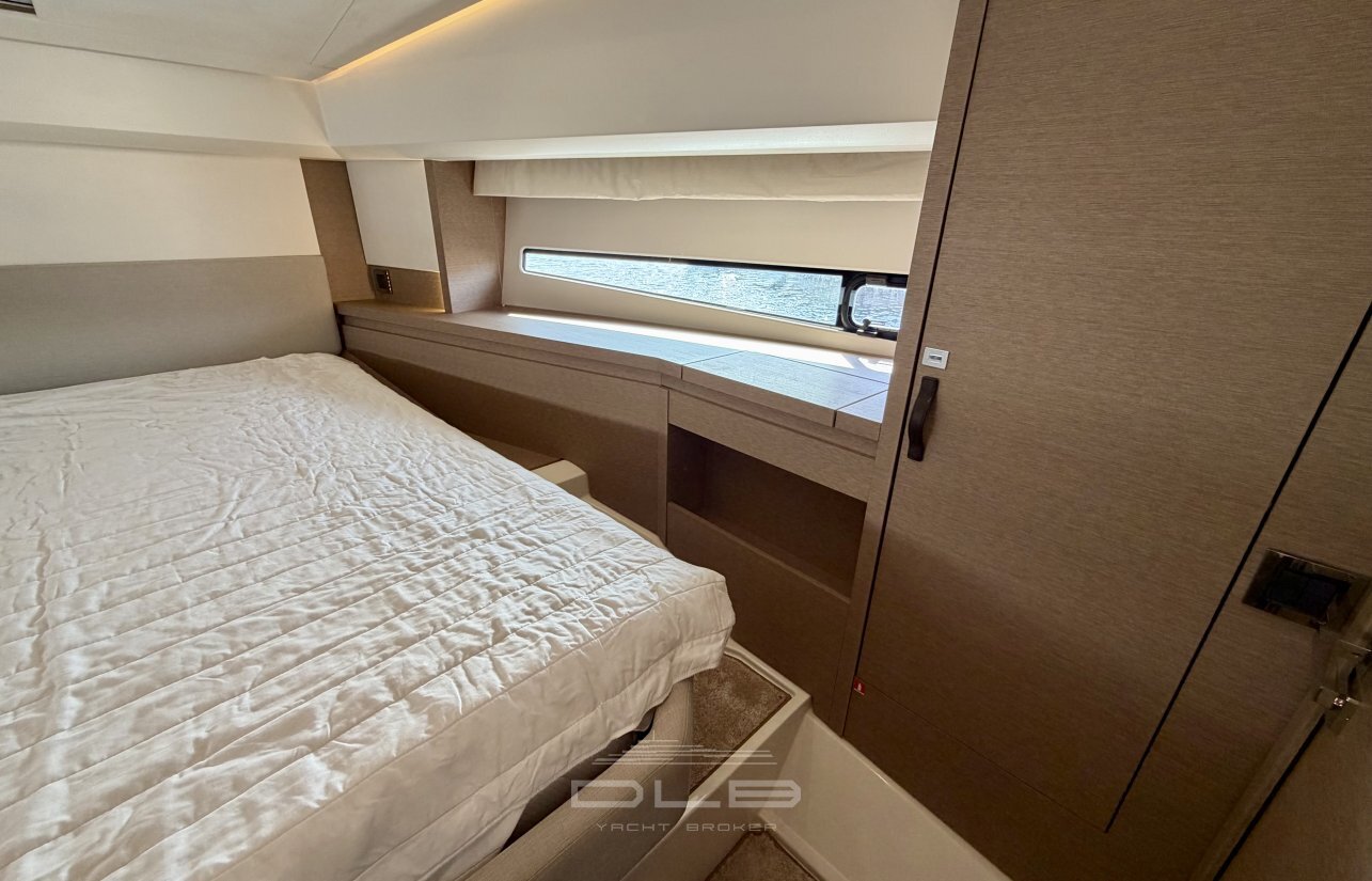Equipped with a Seakeeper, this Prestige 460 delivers outstanding comfort both at anchor and underway, significantly reducing roll and enhancing onboard well-being.