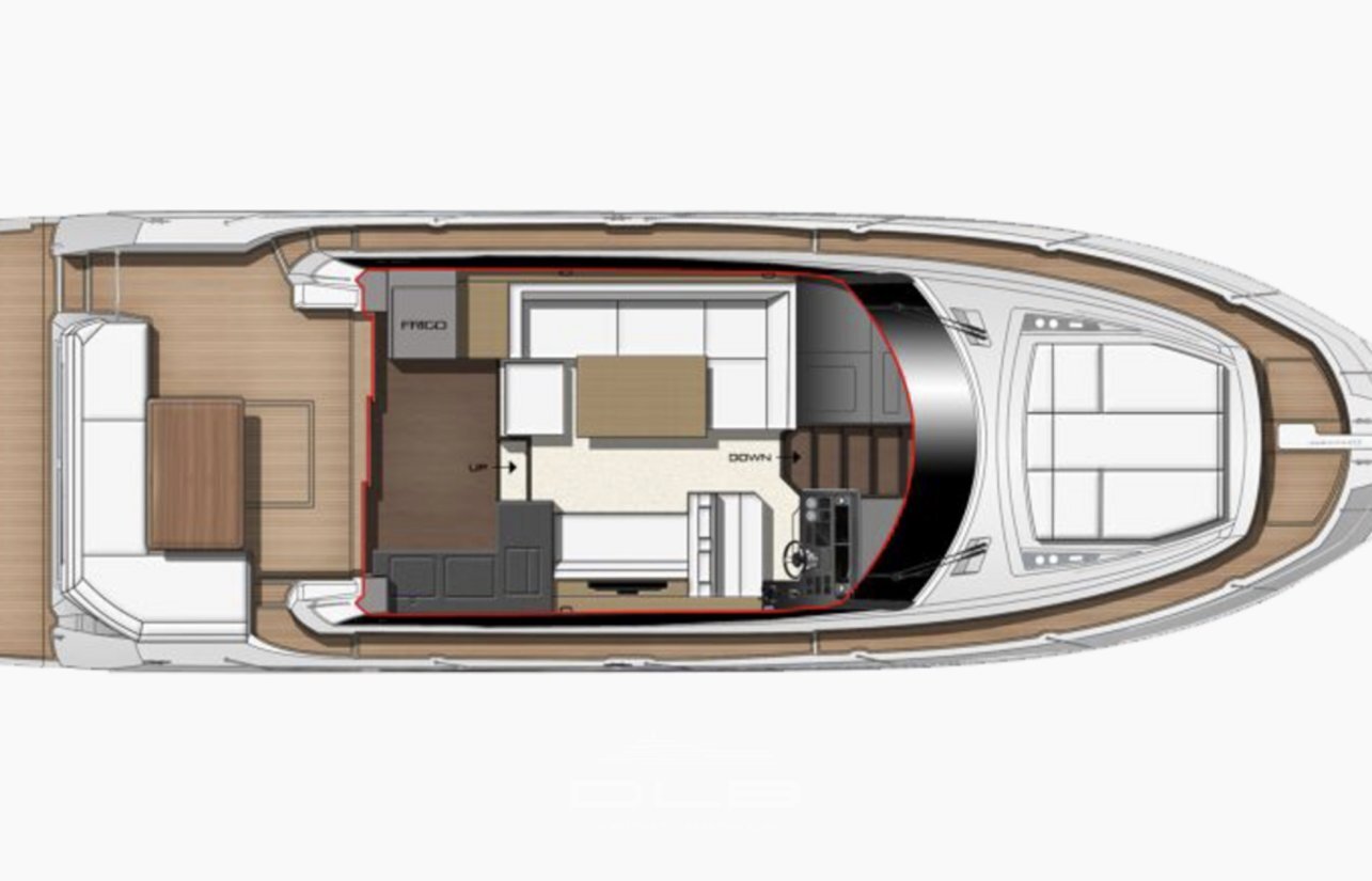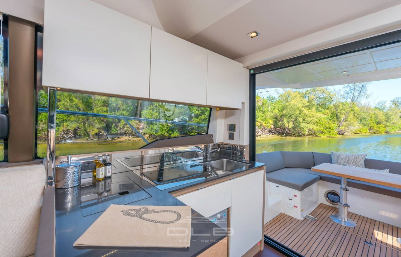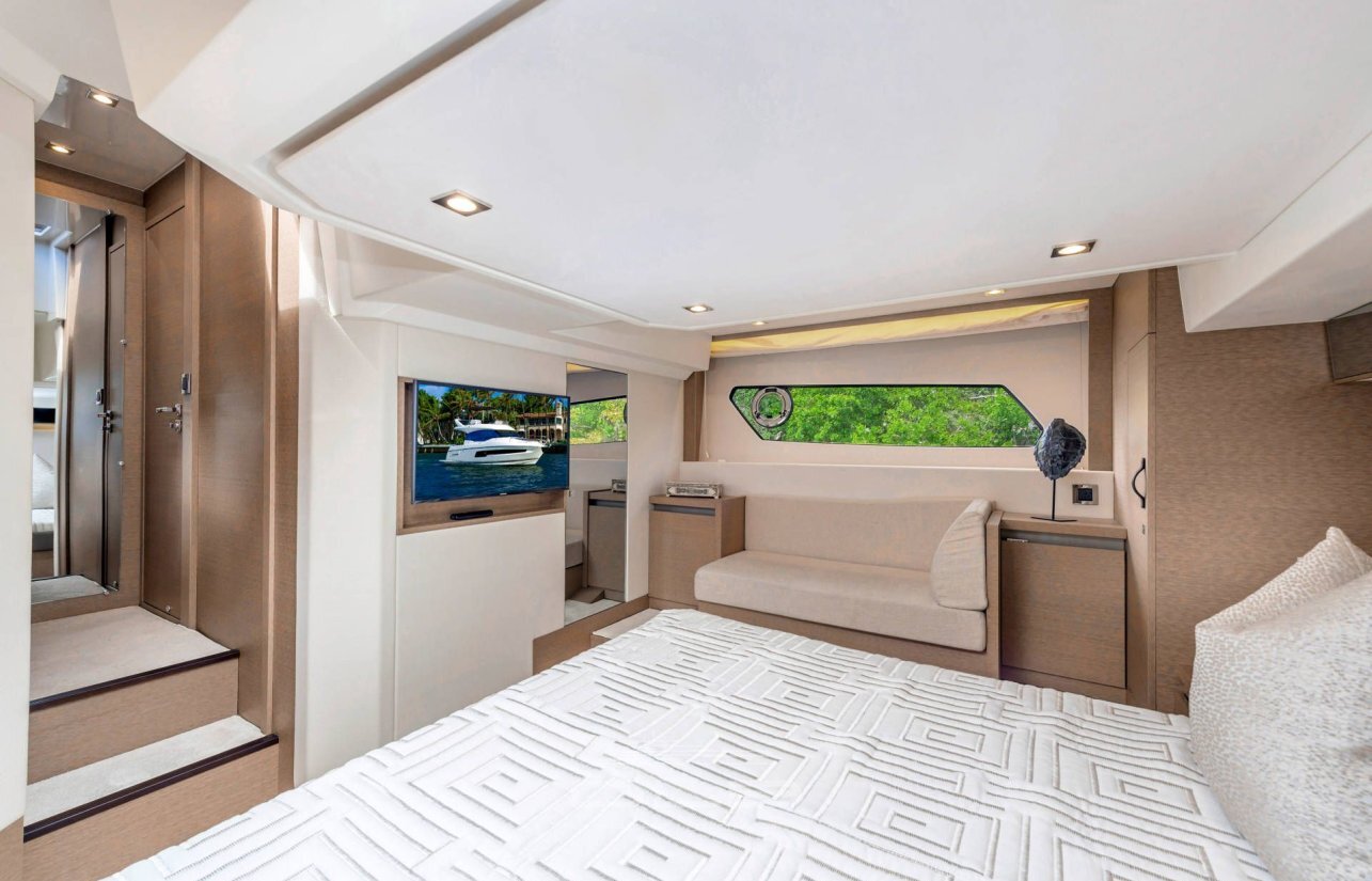 Equipped with a Seakeeper, this Prestige 460 delivers outstanding comfort both at anchor and underway, significantly reducing roll and enhancing onboard well-being.