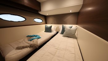 The interior layout includes an aft galley, 3 cabins, 2 of which have a double bed, as well as 2 bathrooms, ensuring comfort and convenience for you and your guests. The elegant and functional configuration of this PRINCESS 52 guarantees a luxurious and pleasant cruising experience.