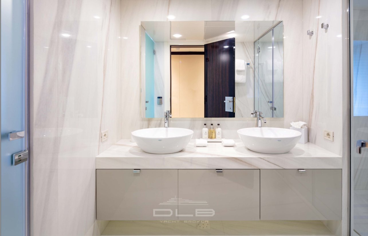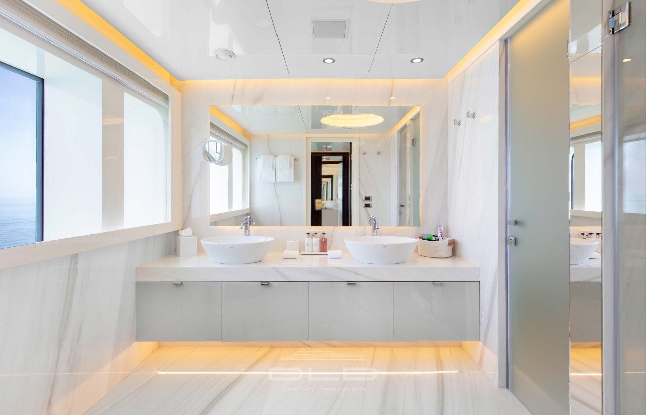 MYSTIC se distingue par une ligne extérieure élégante signée Diana Yacht Design et un intérieur raffiné imaginé par Schnaase Interior Design. Avec 6 cabines luxueuses, elle peut accueillir confortablement jusqu’à 12 invités, accompagnés par un équipage professionnel pour garantir une expérience hors pair.