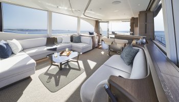 Princess Yachts France DLB vous présente ce magnifique Princess Y72, modèle 2021, conçu pour offrir un confort et des performances inégalés. Ce bateau se distingue par une cuisine ouverte sur le cockpit extérieur, créant un espace de vie convivial et fluide pour des moments de détente et de partage.